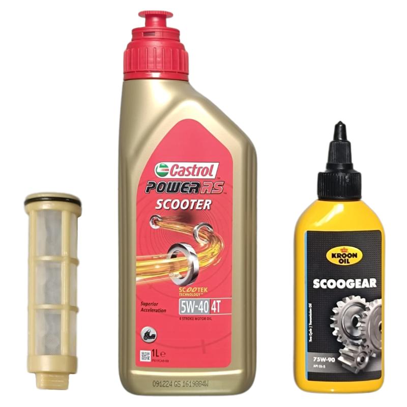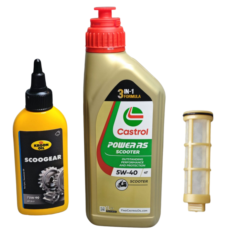 Dieses Wartungspaket ist für jede 4-Takt Vespa und Piaggio Zip geeignet. Das Castrol 5W40 Motoröl ist das beste Motoröl für diese Roller. Tatsächlich sind die Roller von Vespa/Piaggio „Powered by Castrol“, dies ist also sogar vom Werk vorgeschrieben. Der Ölfilter ist original von Piaggio selbst, also von bester Qualität und das Getriebeöl ist von Kroon-Oil. Auch einer der Besten seiner Art. Kurz gesagt: nur qualitativ hochwertige Produkte zu einem wettbewerbsfähigen Preis. Du schraubst gerne an Deinem Roller herum und möchtest durch die Eigenwartung viel Geld sparen? Dann ist dieses Wartungspaket genau das Richtige für Sie!