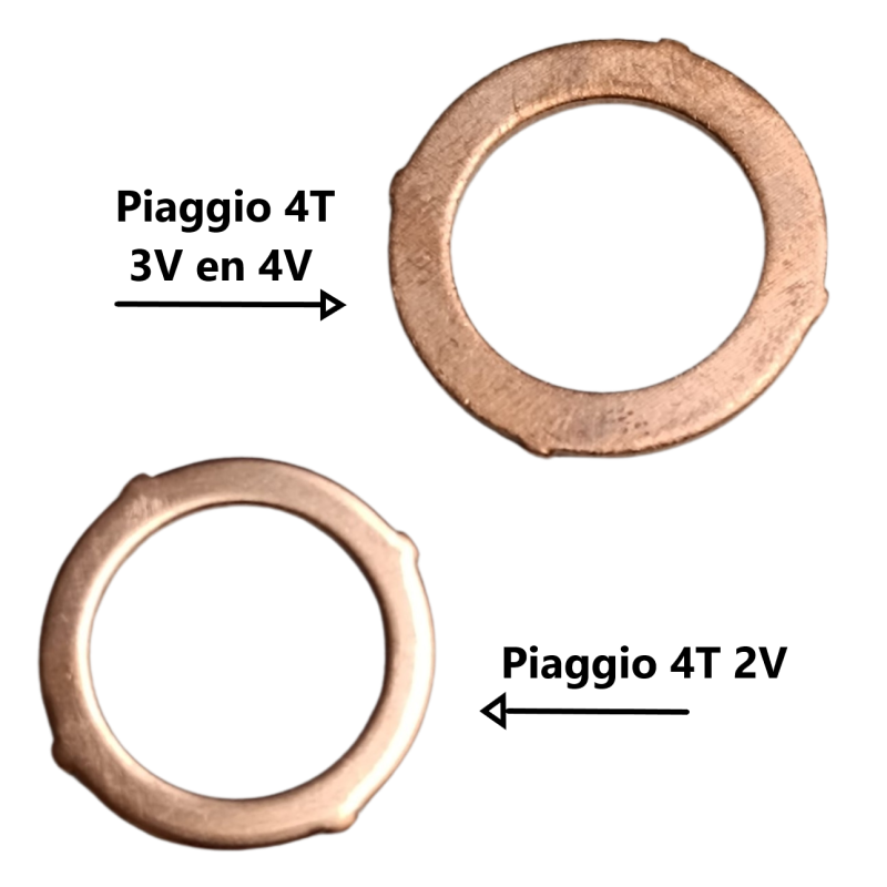 Copper exhaust gasket for all Piaggio and Vespa 4-stroke 3V and 4V models (alternative for original gasket 845776 of approximately €10!).